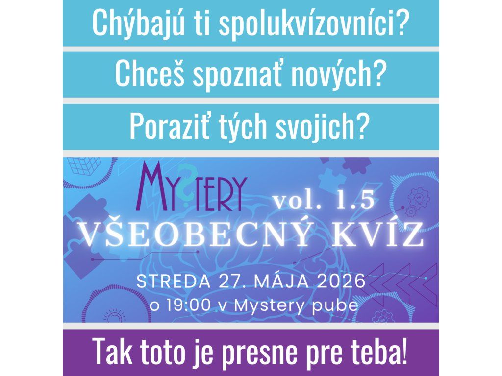 Kvízovníci a ne-kvízovníci, tento večer je pre vás, od nás a s láskou. Príďte si vyskúšať náš nový Mystery Miš-Maš kvíz "nanečisto" úplne ZDARMA a zistite, ako by ste...